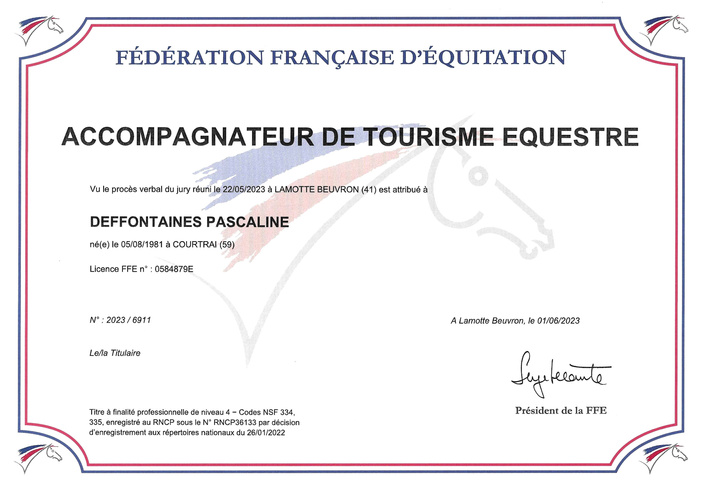 de l’équitation (dispensé par des professionnels de l’enseignement en équitation).