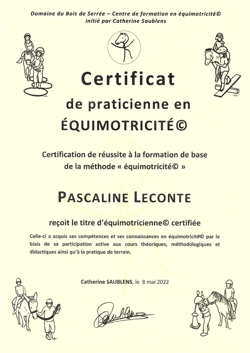 Equimotricienne© formée et certifiée par Catherine Saublens